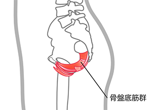 骨盤底筋群は、骨盤の底に位置する筋肉の集まりで、膀胱や子宮、直腸などの内臓を支え、排尿・排便のコントロールにも関わっています。